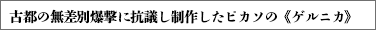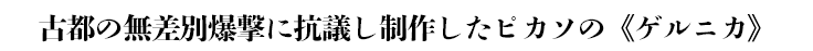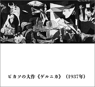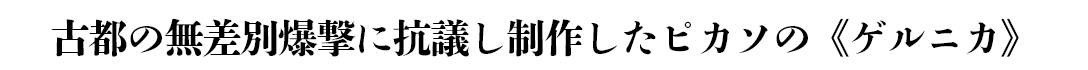 スペイン内戦さなかの1937年4月、フランコ将軍が率いる反乱軍を支援したドイツ・ナチス軍はバスク地方の古都ゲルニカを無差別爆撃した。容赦なく爆弾の雨を降らせ、無防備な多数の市民の命を奪った。